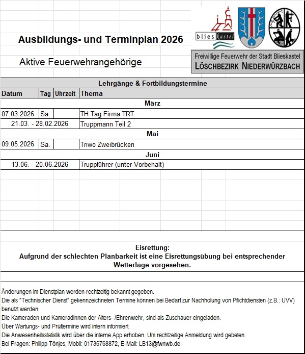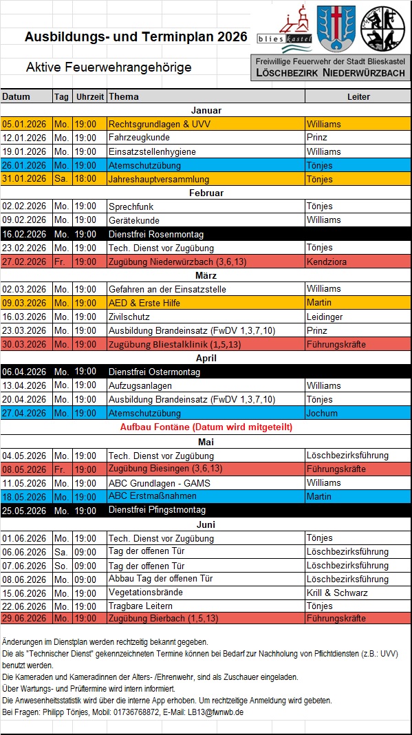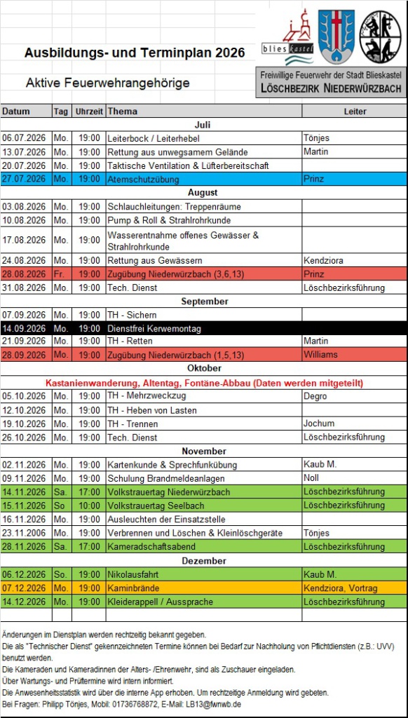 Dienstplan Jugendfeuerwehr