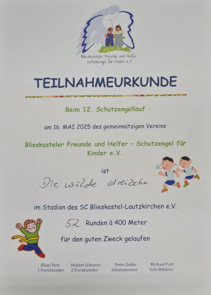 Am Freitag, den 16. Mai 2025, fand im Stadion des SC Blieskastel-Lautzkirchen der 12. Blieskasteler Schutzengellauf statt. Auch die Freiwillige Feuerwehr Niederwürzbach war mit dabei: Zwei Kameraden und eine Kameradin nahmen aktiv an der Benefizveranstaltung teil.